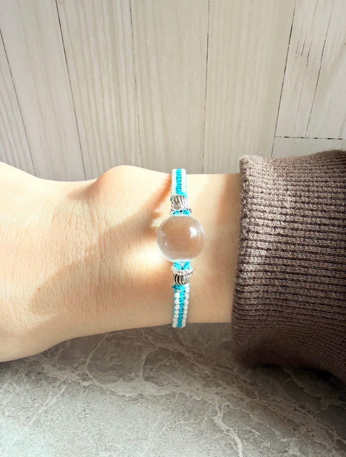クリアクォーツ(水晶)マクラメブレスレット|貫通穴なし